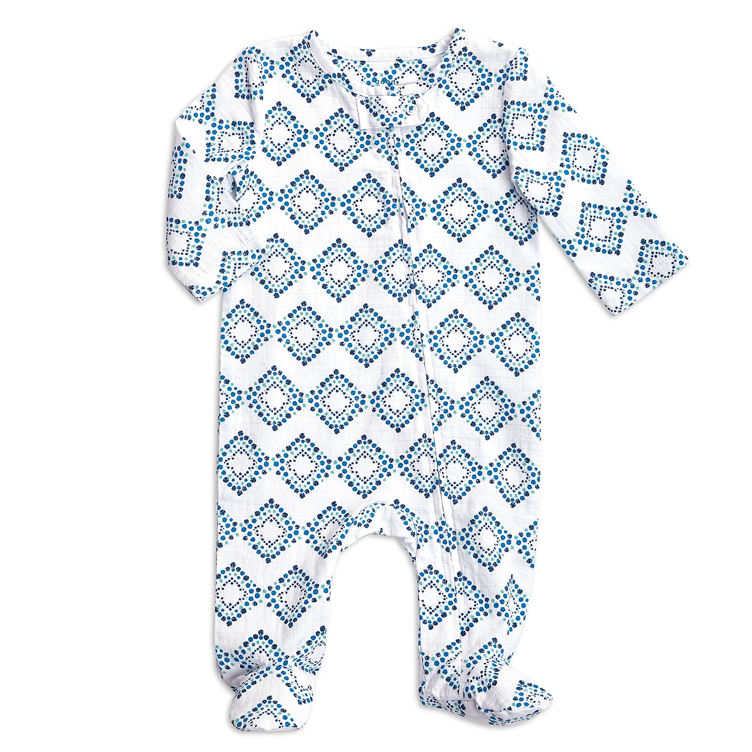 Aden and Anais Baby footed stretch cotton muslin Pajama - In turquoise stripe, faded navy blue X's, blue diamond print or pink small floral vine print