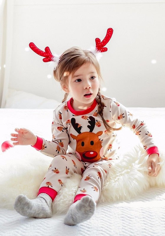 This adorable Reindeer 2 piece PJ is made of 100% cotton. The red neck line and cuffs are perfect for the holidays, and will keep any little one feeling festive and warm.