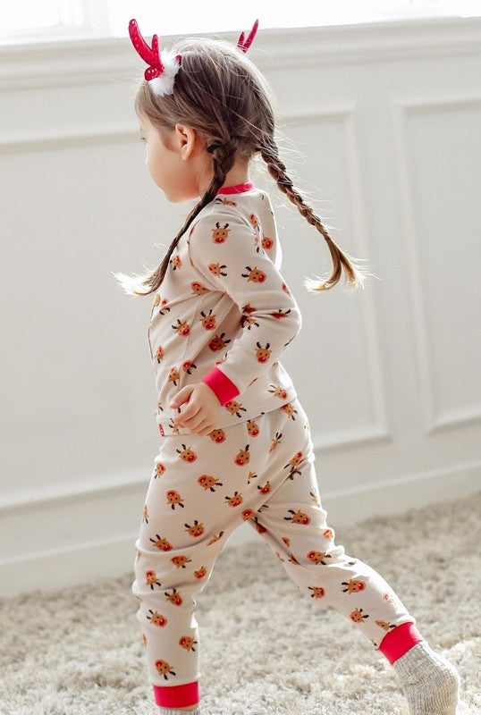 Toddler unisex cotton reindeer 2 piece beige pajama