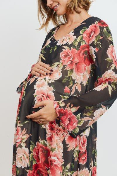 Women's Bell sleeve V neck maternity & Post natal dark floral swing dress