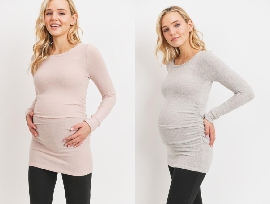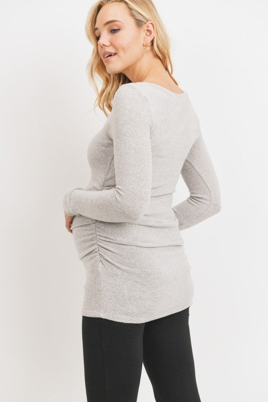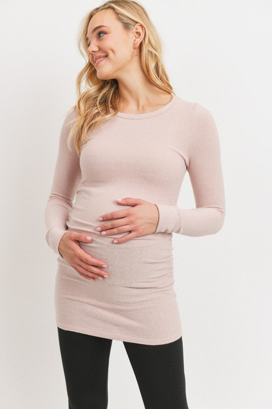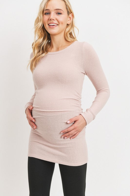 Cashmere-like super soft round neck long sleeve maternity/ postnatal top with side ruching.