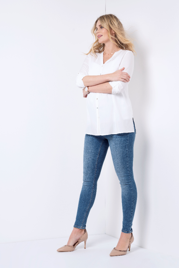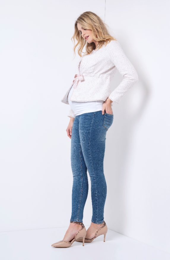 Stylish and slimming with plenty of stretch, these super-skinny maternity jeans feel as good as they look. An off duty essential, they are made in premium denim with added stretch, designed to hug your legs from hip to hem for that unbeatable second skin fit. The over bump band fits seamlessly under your clothes, while faux pockets at the front ensure an ultra-smooth finish. Team with one of our stylish maternity tops and sneakers for easy off duty style.