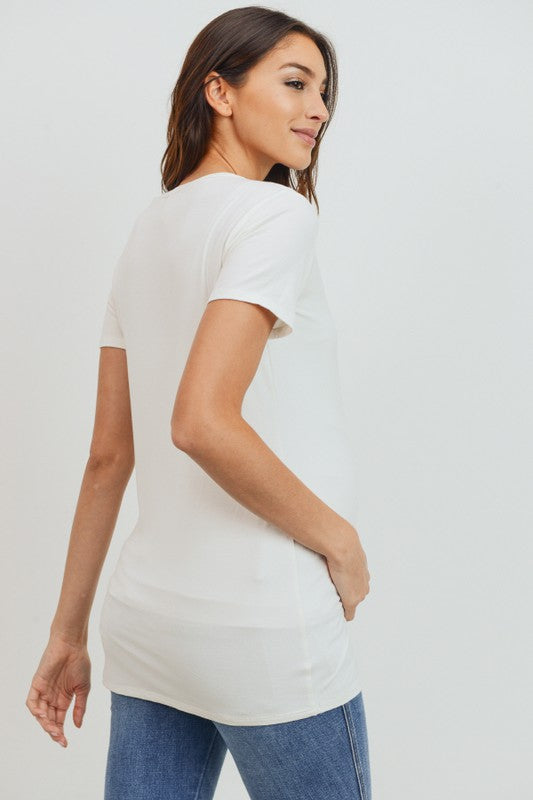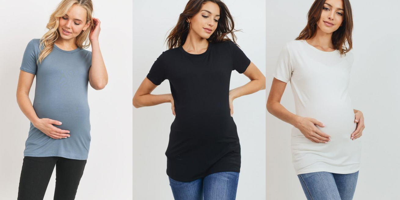 Women's super soft modal maternity & postnatal short sleeve T-shirt in black, sea blue or ivory